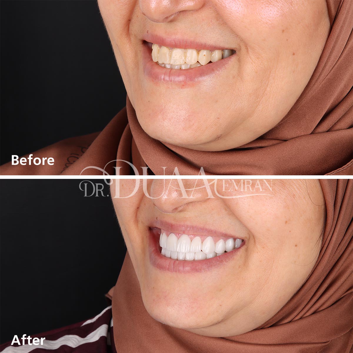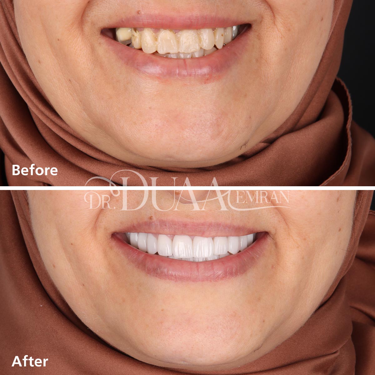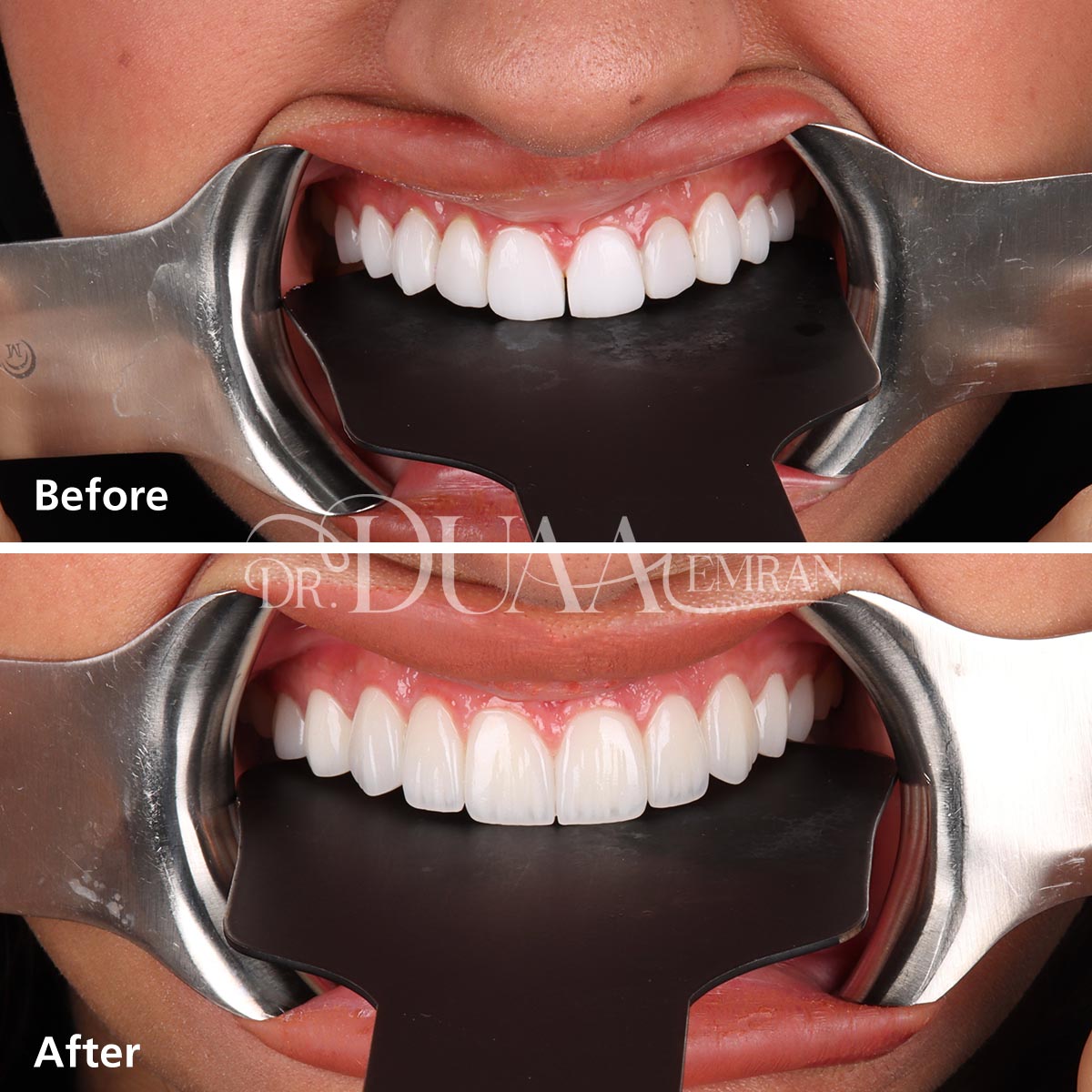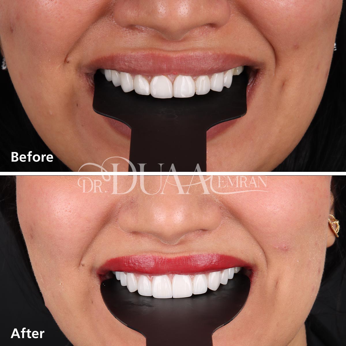 تقوم الدكتورة دعاء بتركيب الفينير بكفاءة عالية ودقة تامة للحصول على نتائج طبيعية، وتهتم بحجم الأسنان المحيطة ولونها لتمنح قشور الفينير مظهراً طبيعياً يتلائم مع بقيه الاسنان بشكل تام، ويوفر القوة والمتانة في الوقت نفسه.