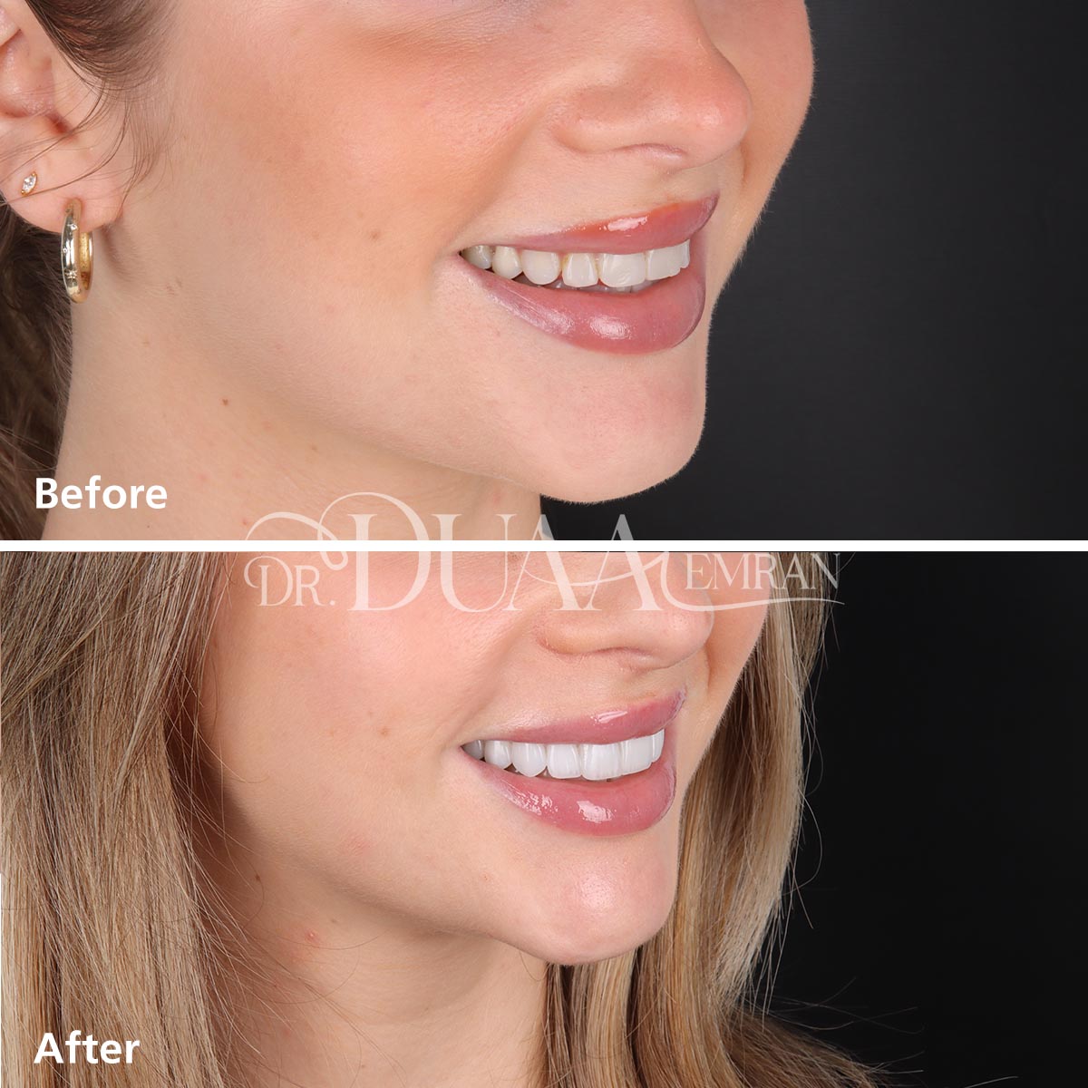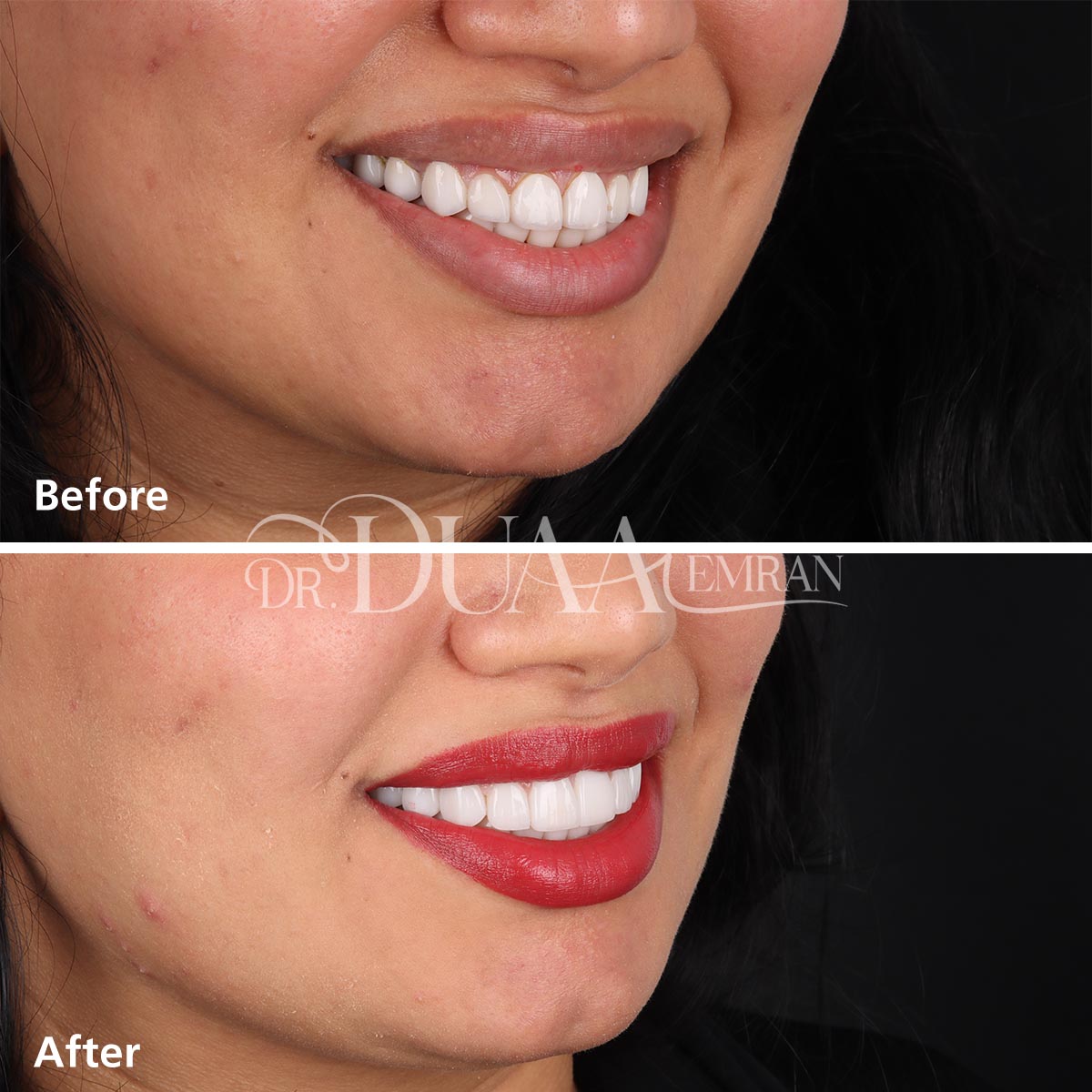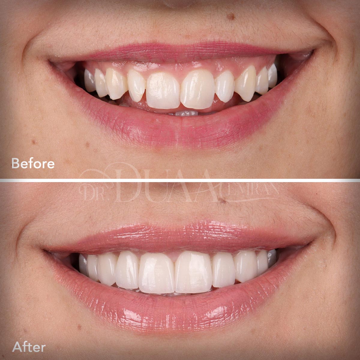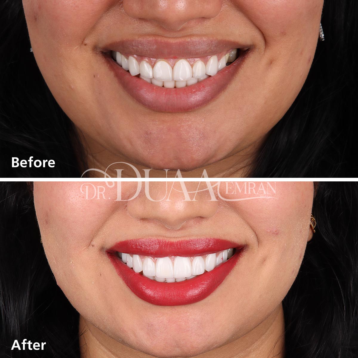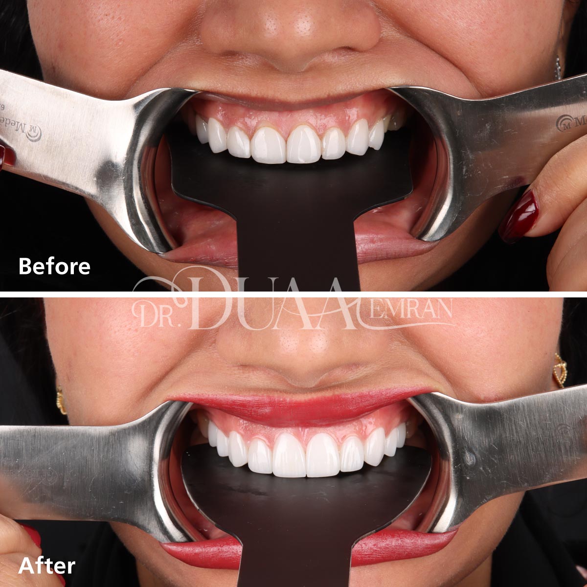 تقوم الدكتورة دعاء بتركيب الفينير بكفاءة عالية ودقة تامة للحصول على نتائج طبيعية، وتهتم بحجم الأسنان المحيطة ولونها لتمنح قشور الفينير مظهراً طبيعياً يتلائم مع بقيه الاسنان بشكل تام، ويوفر القوة والمتانة في الوقت نفسه.