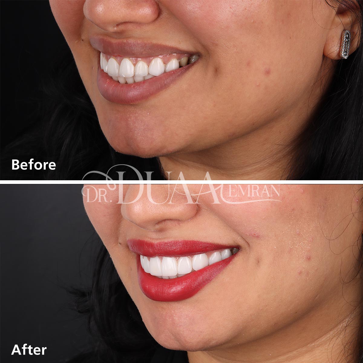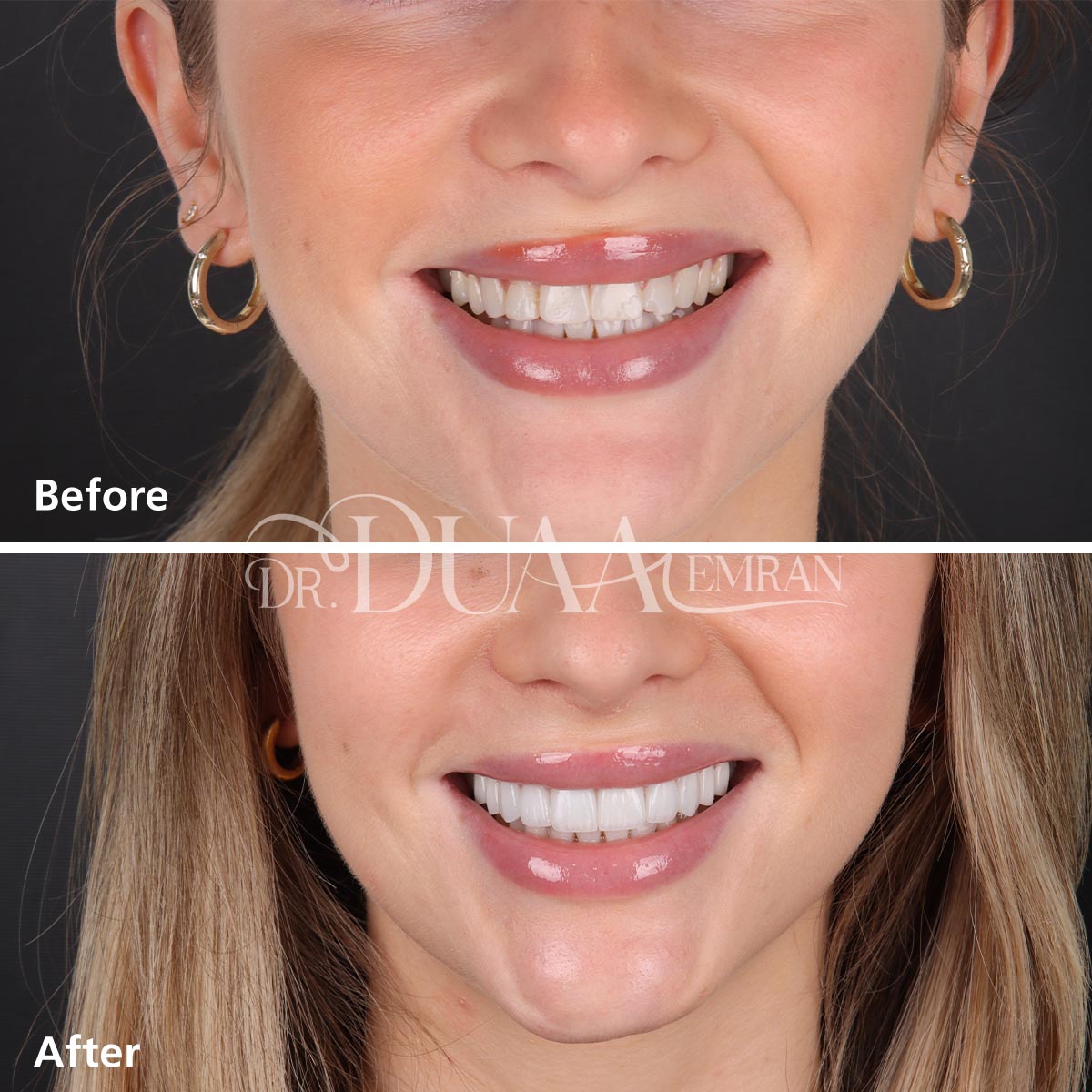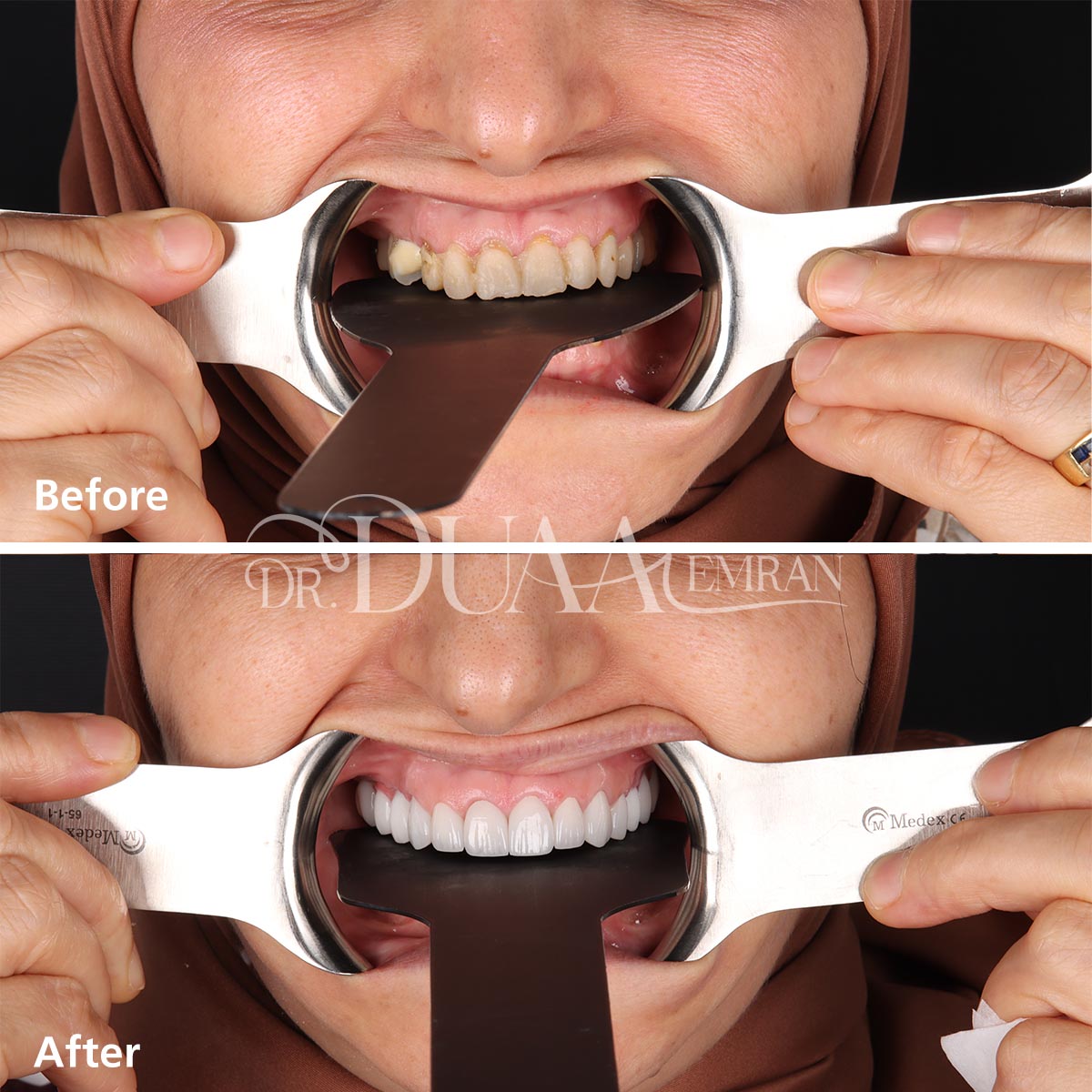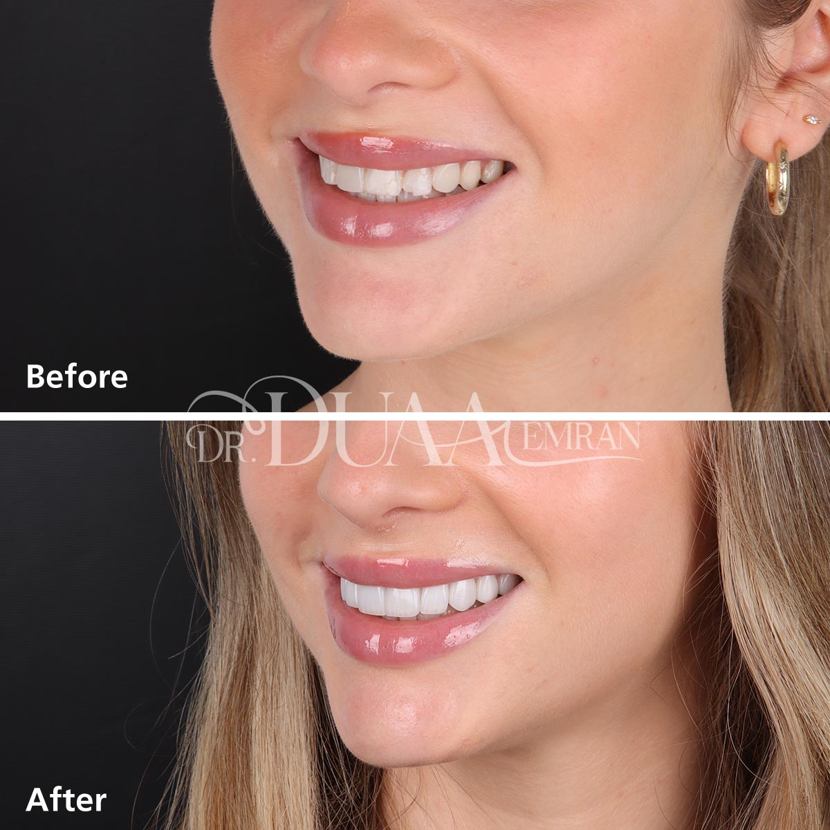 تقوم الدكتورة دعاء بتركيب الفينير بكفاءة عالية ودقة تامة للحصول على نتائج طبيعية، وتهتم بحجم الأسنان المحيطة ولونها لتمنح قشور الفينير مظهراً طبيعياً يتلائم مع بقيه الاسنان بشكل تام، ويوفر القوة والمتانة في الوقت نفسه.